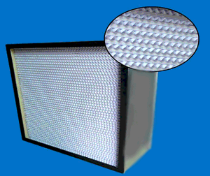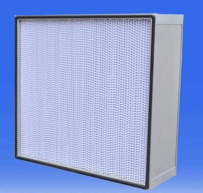 有隔板高效过滤器是用超细纤维作滤料、优质牛皮纸热滚压成形或采用胶版纸、铝铂作分隔板,与木框或铝合金框胶和而成,具有过滤效率高,阻力低,风量大的优点。