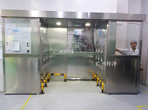 货淋室经过高效过滤器过滤后的洁净气流由可旋转喷嘴从各个方向喷射至物体表面,有效而迅速清除尘埃粒子,带有尘埃粒子的空气再由初、高效过滤器过滤后重新循环到货淋区域。货淋室的两道门电子互锁,可以兼起气闸室的作用,防未被净化的空气进入洁净室,高科技智能语音货淋室带有语音提示系统,在吹淋时由自动语音系统提示,人性化语音提示给人一种亲切感觉,并达到有效的净化效果。