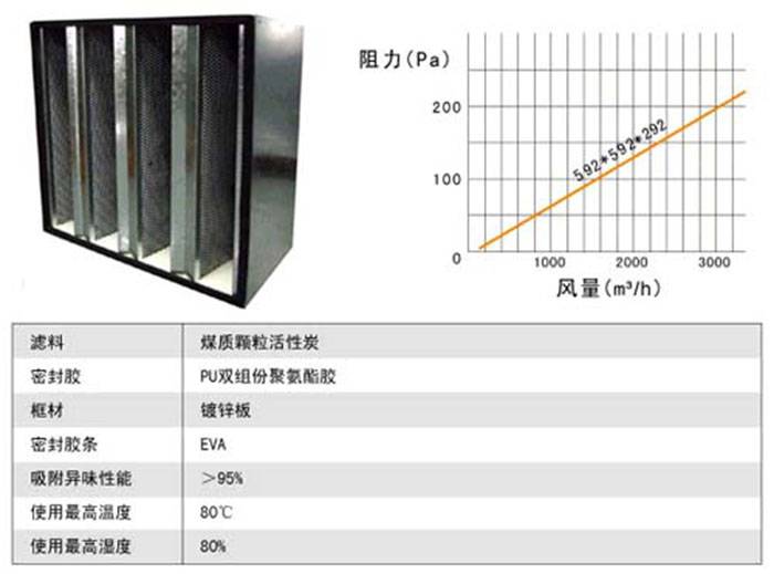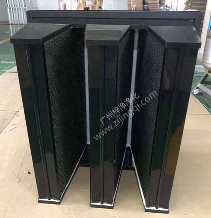 一种组合式颗粒活性炭过滤器的制作方法(V型),组合式颗粒活性炭过滤器外框有两种,一种是塑料框,一种是镀锌框。