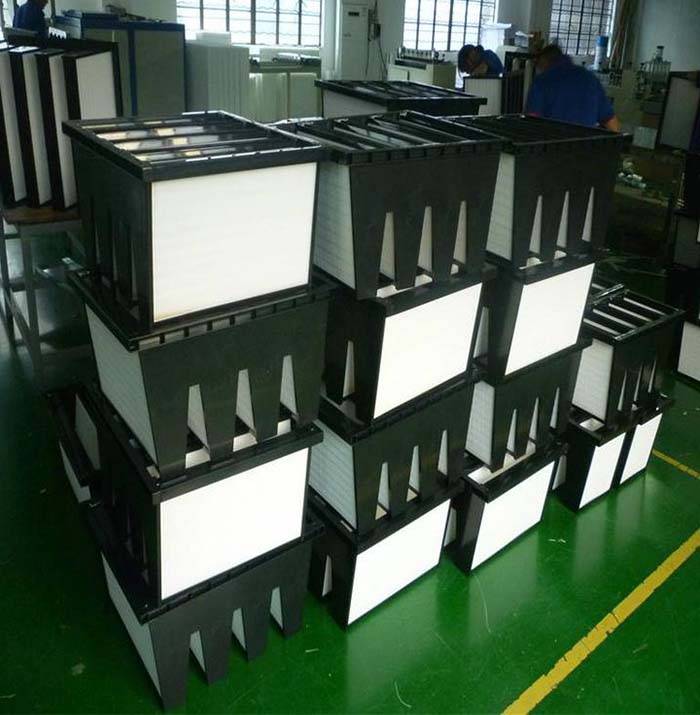 W型V型组合式高效过滤器适应场所:航天、电子、半导体、晶片、生物制药、医院、食品加工等高洁净度场合。