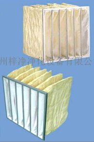 袋式过滤器有效过滤面积大,容尘量大,阻力小,通风量大;框架及支撑架均可重复使用,更换过滤器时仅需更换过滤袋,且方便快捷,大大降低运行成本费用。广泛应用于电子、制药、医疗、食品等行业的过滤系统,是目前结构最好的中效过滤器。中效袋式过滤器可分为:F5,F6,F7,F8,F9中效袋式过滤器边框为铝型材,滤料有无纺布、玻璃纤维等。